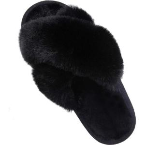 Comwarm Women’s Cross Band Fuzzy Slippers Fluffy Open Toe House Slippers Cozy Plush Bedroom Shoes Indoor Outdoor(Watermelon Red)