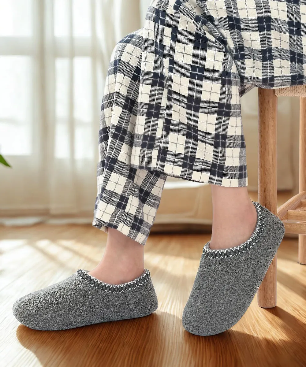 shevalues Women House Memory Foam Slippers Teddy Fleece Bedroom Sock Shoes with Soft Rubber Sole(Grey)