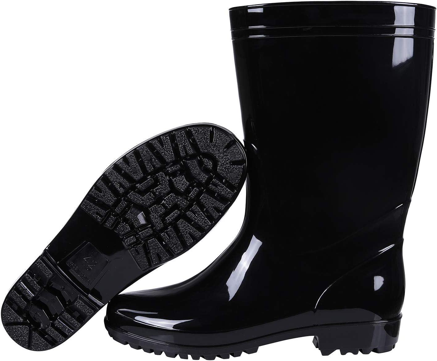 Comwarm Men’s Mid-calf Rain Boots Waterproof Anti-Slip Black PVC Adult Outdoor Work Rubber Boots(Black)
