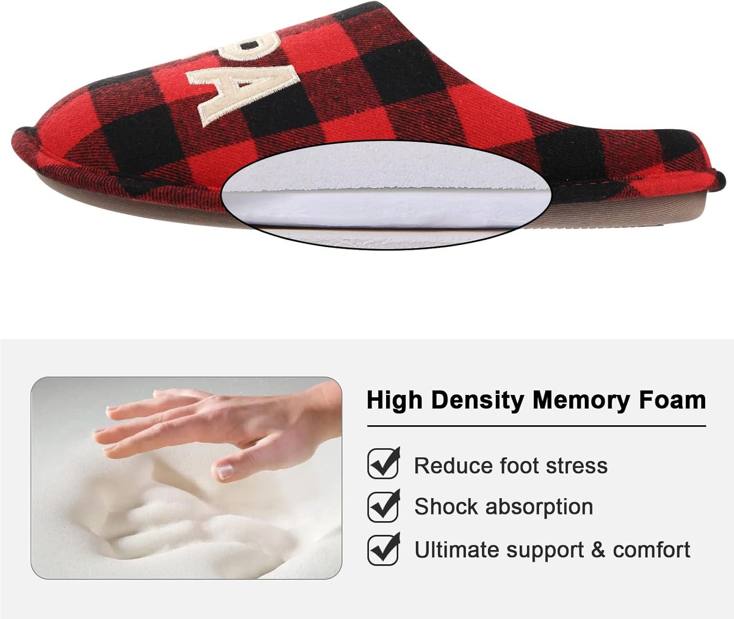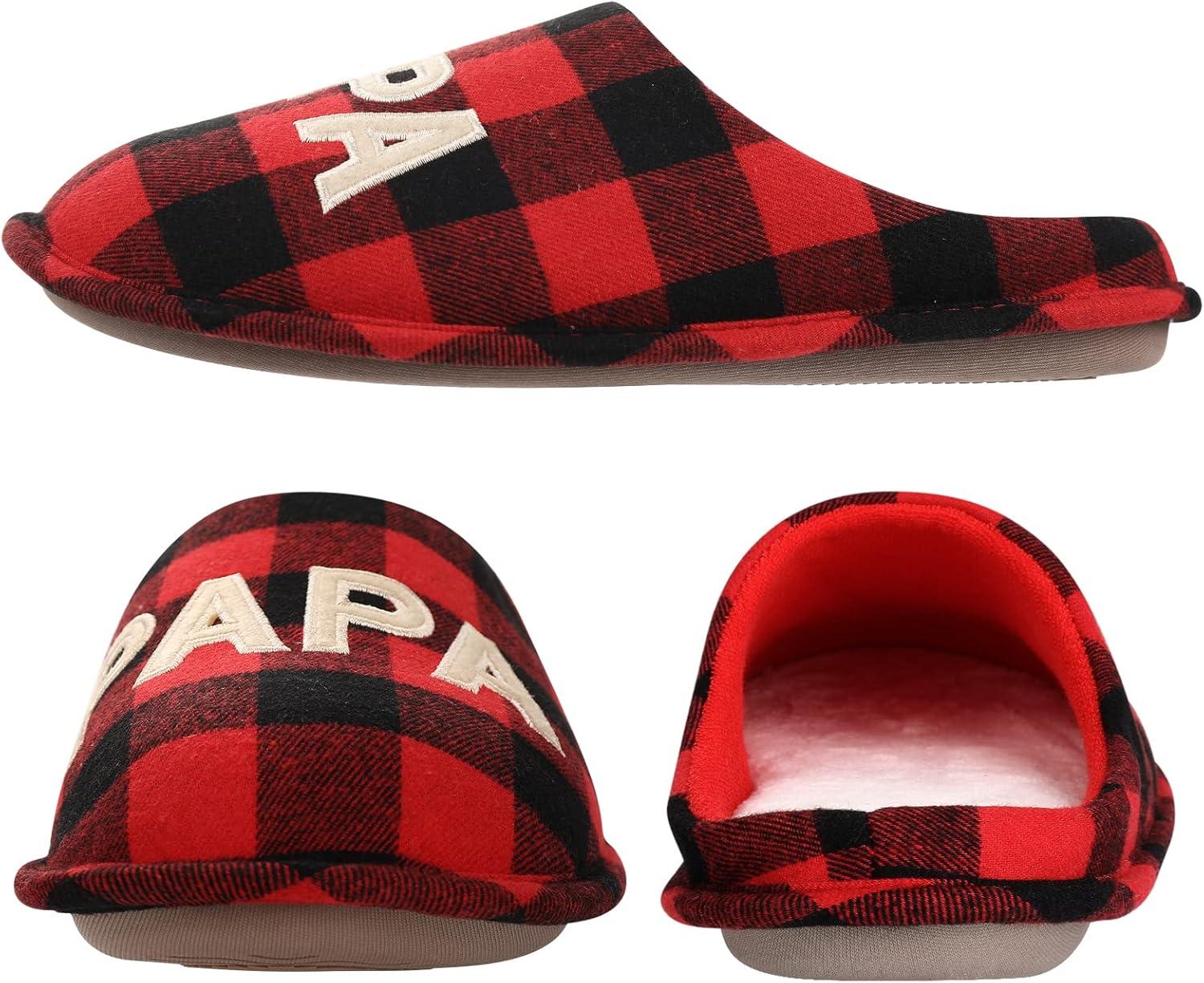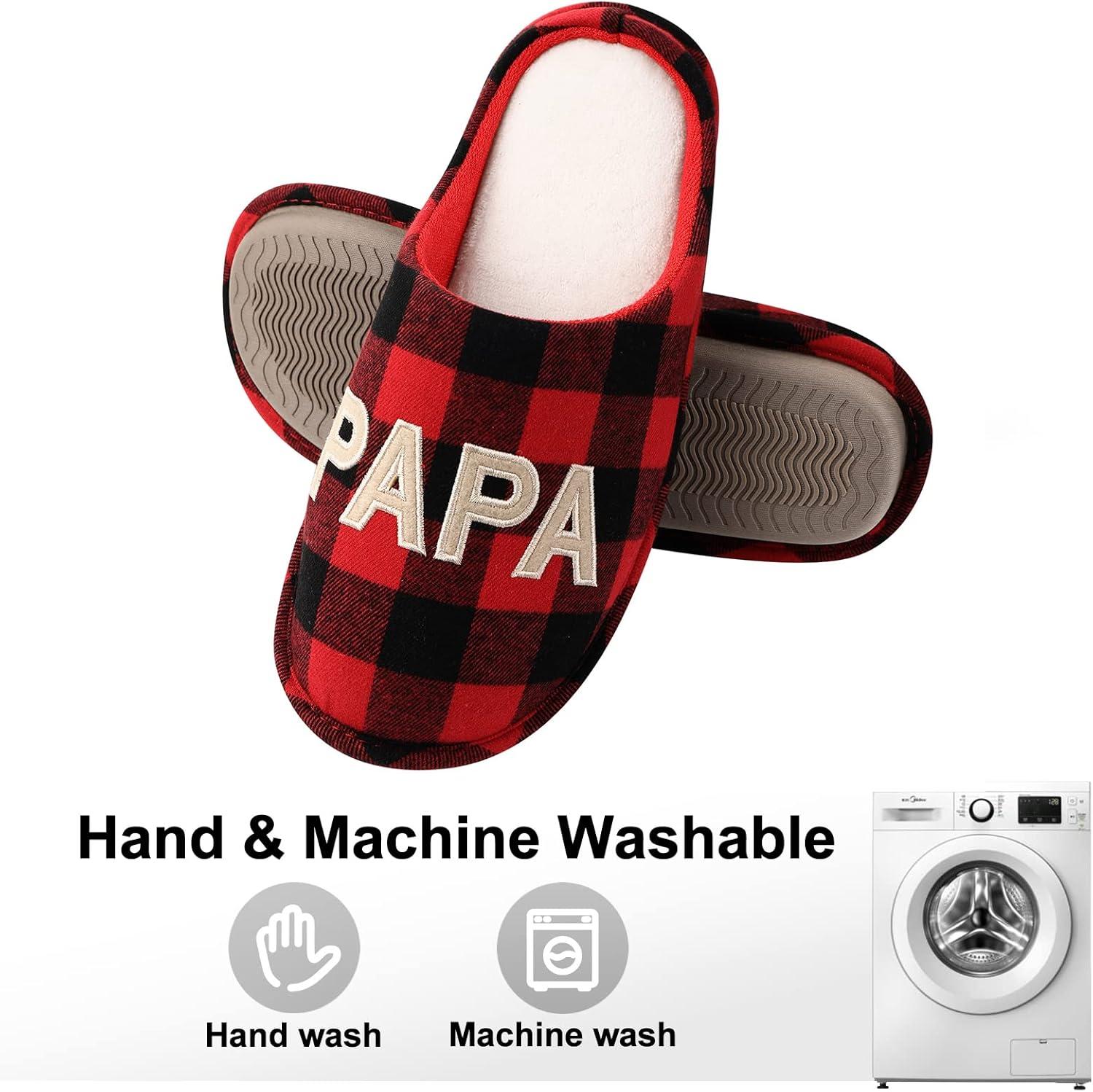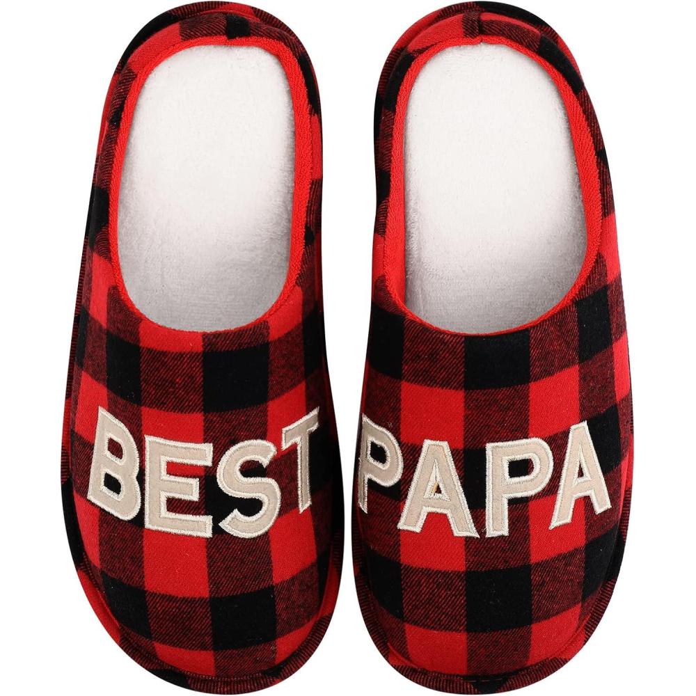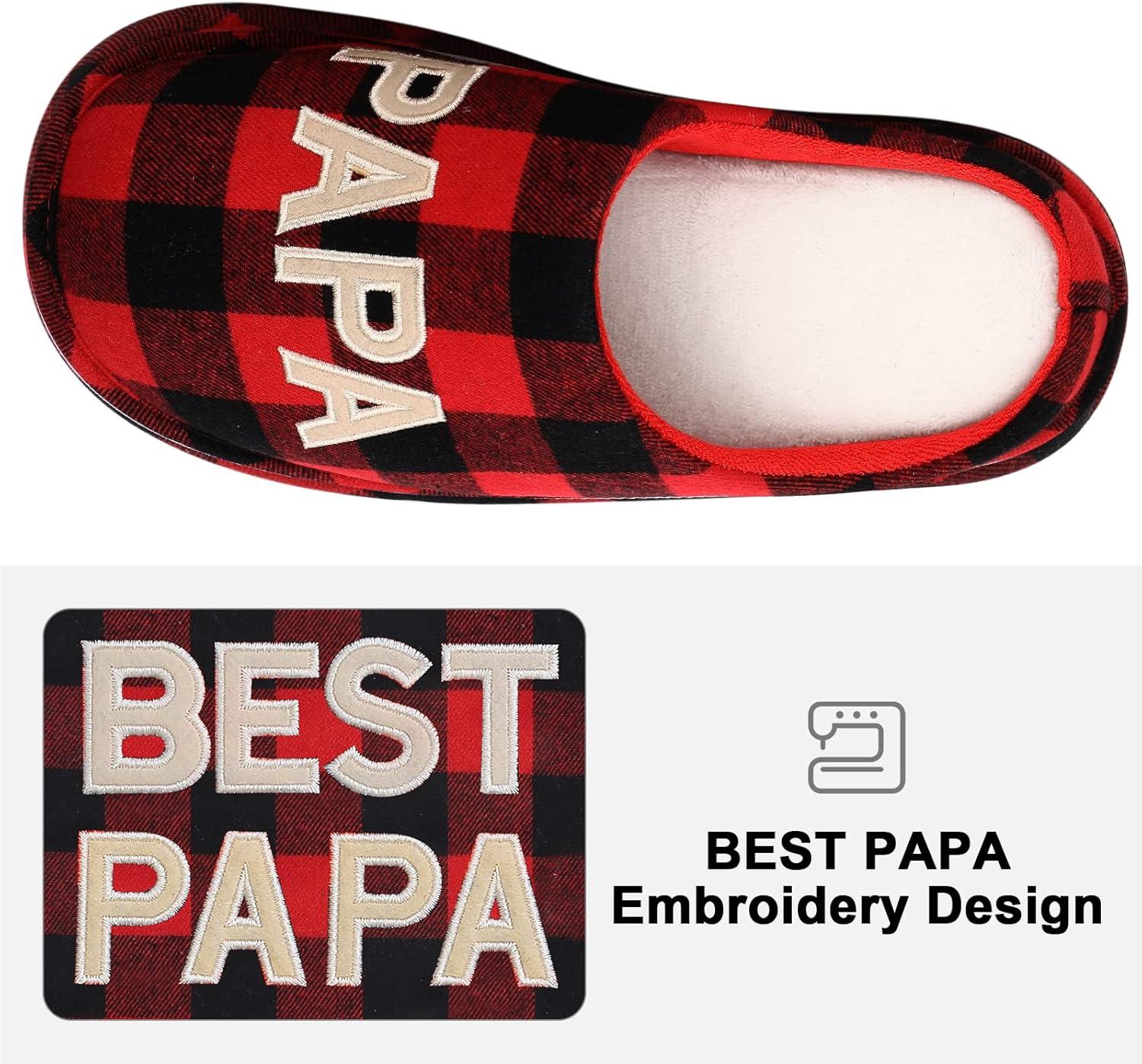 shevalues Best Mama Papa House Slippers for Mom and Dad from Daughter Son, Memory Foam Indoor Slippers for Women Men(Terry Cloth – Best Papa Buffalo Plaid)