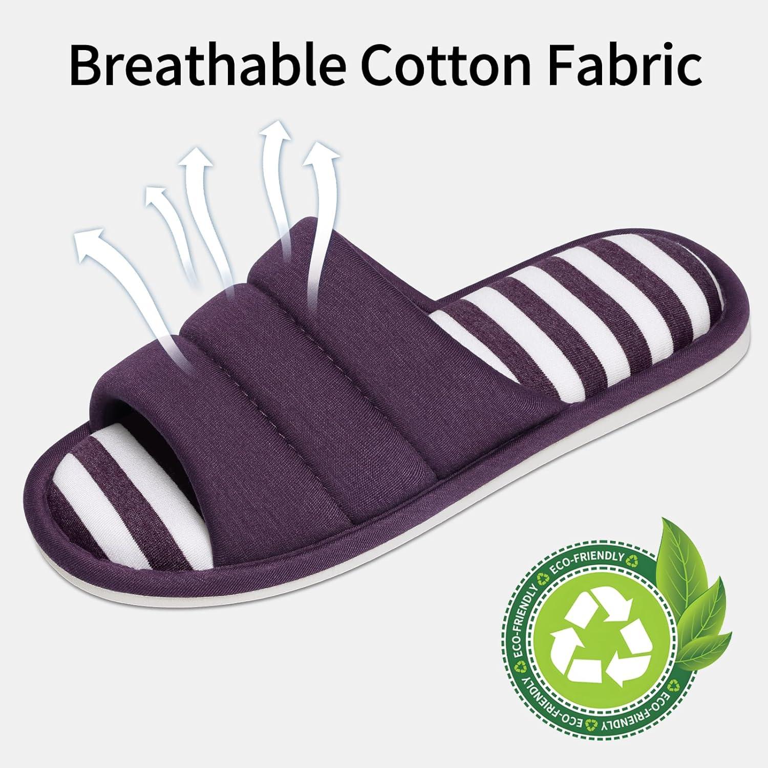 shevalues Open Toe House Slippers for Women Men Soft Cotton Indoor Shoes Memory Foam Slip On bedroom Slippers(Purple)