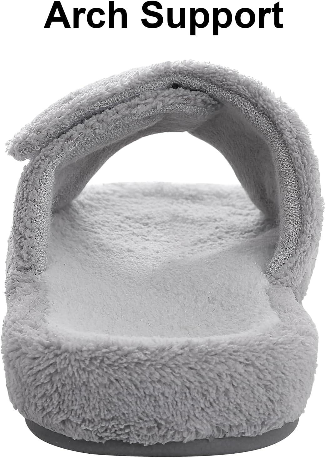 shevalues Orthopedic Slippers for Women with Arch Support Adjustable Open Toe House Shoes for Plantar Fasciitis(Grey)
