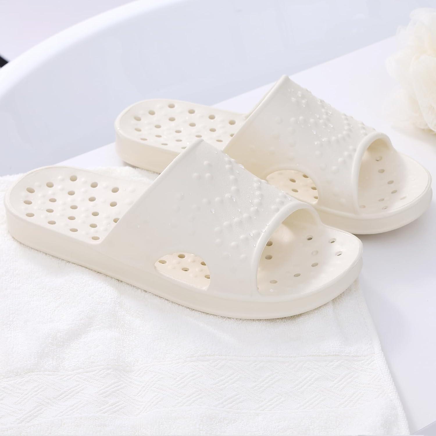 shevalues Shower Shoes for Women Men with Arch Support Quick Drying Pool Slides Lightweight Beach Sandals with Drain Holes(Beige)