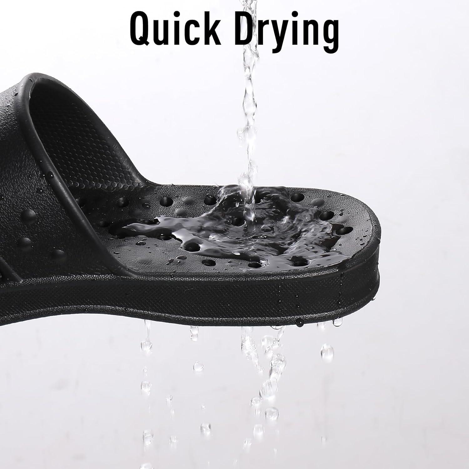 shevalues Shower Shoes for Women Men with Arch Support Quick Drying Pool Slides Lightweight Beach Sandals with Drain Holes(Black)