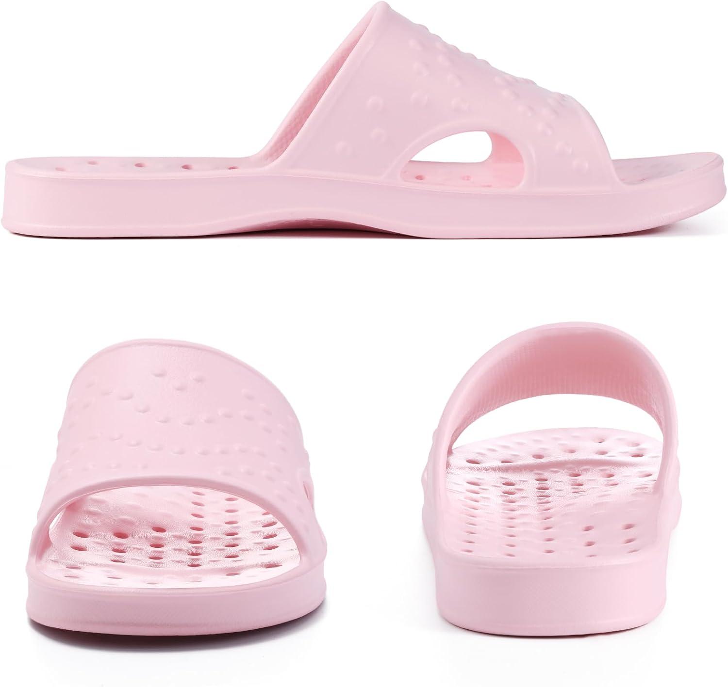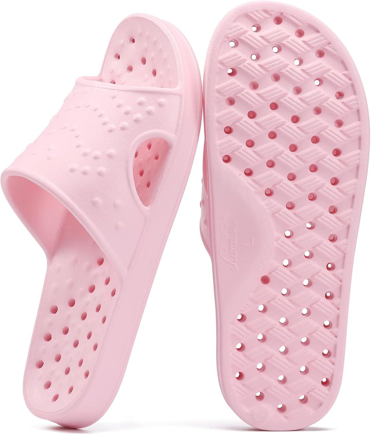 shevalues Shower Shoes for Women Men with Arch Support Quick Drying Pool Slides Lightweight Beach Sandals with Drain Holes(Pink)