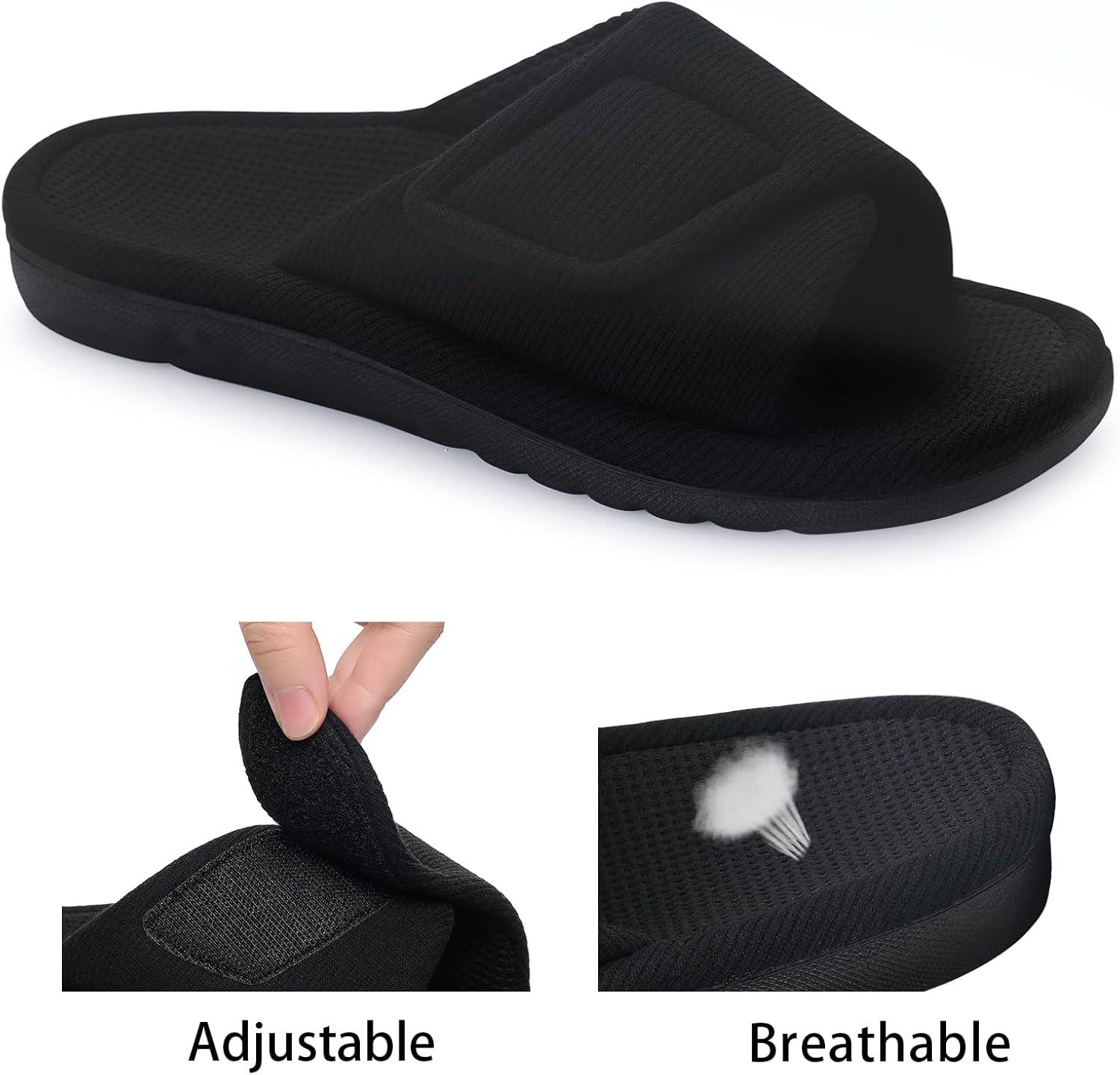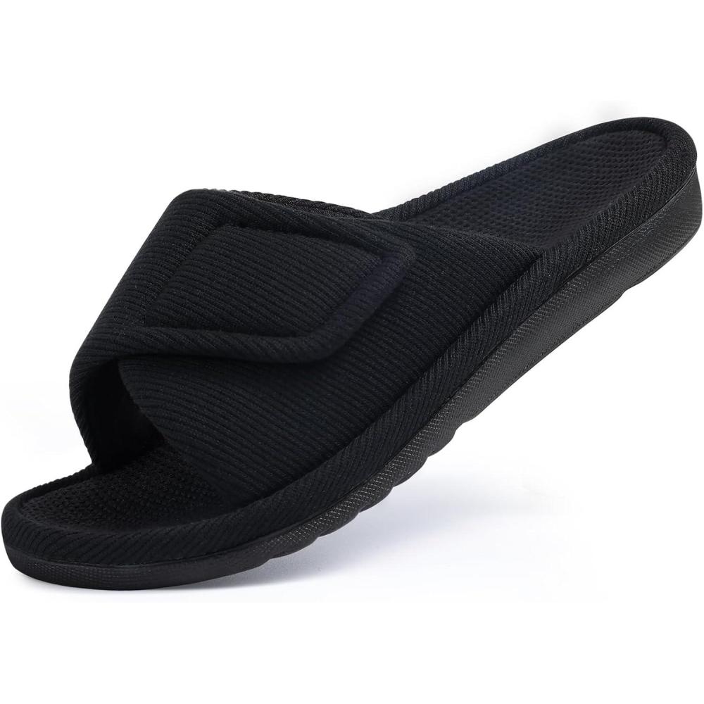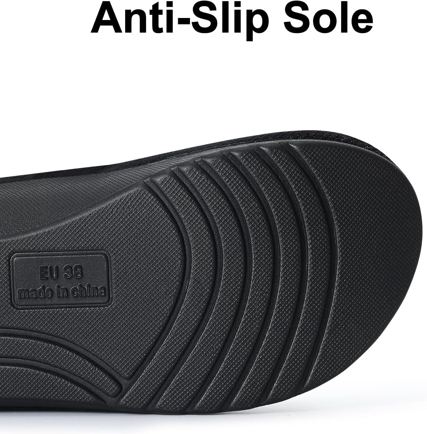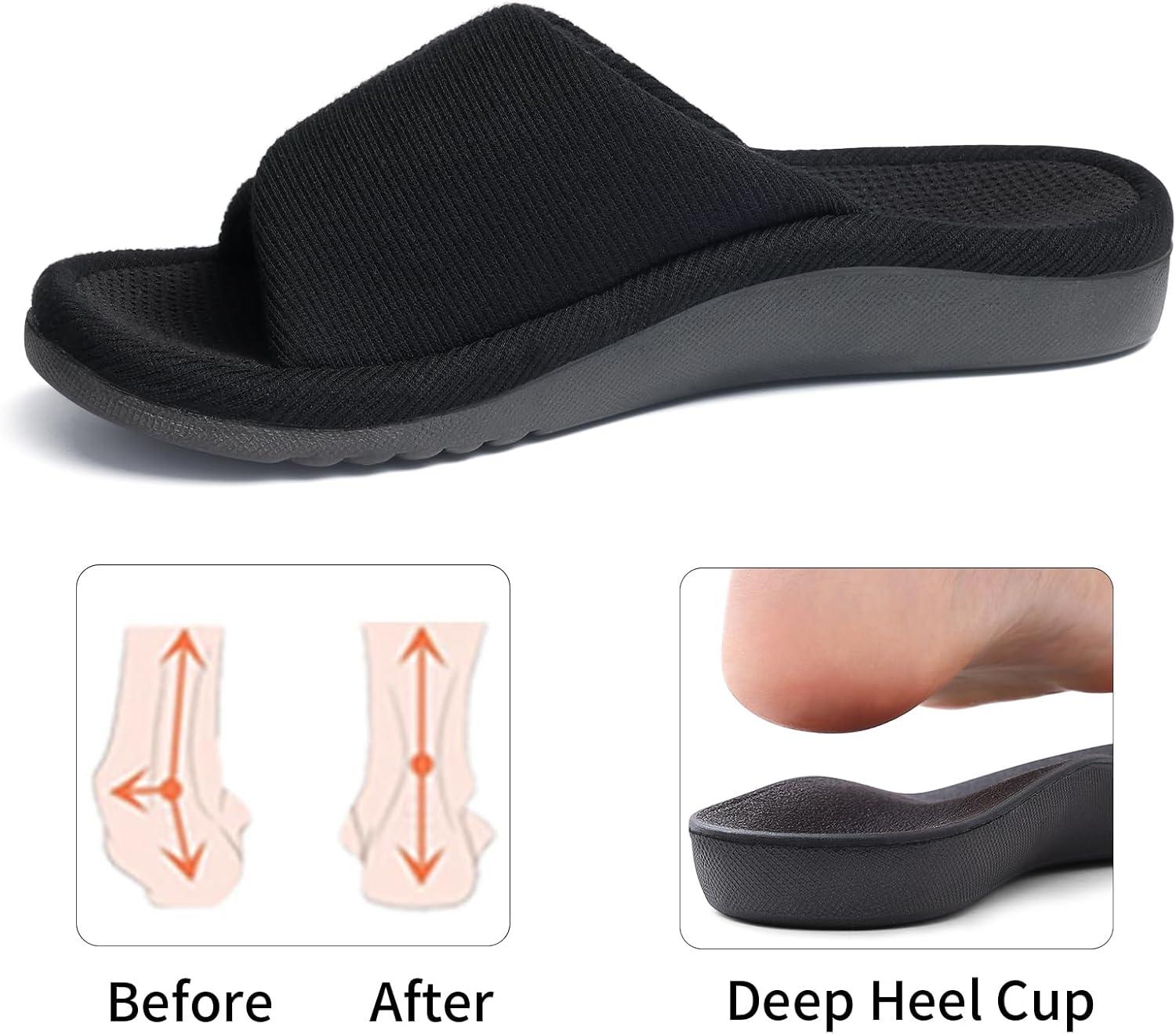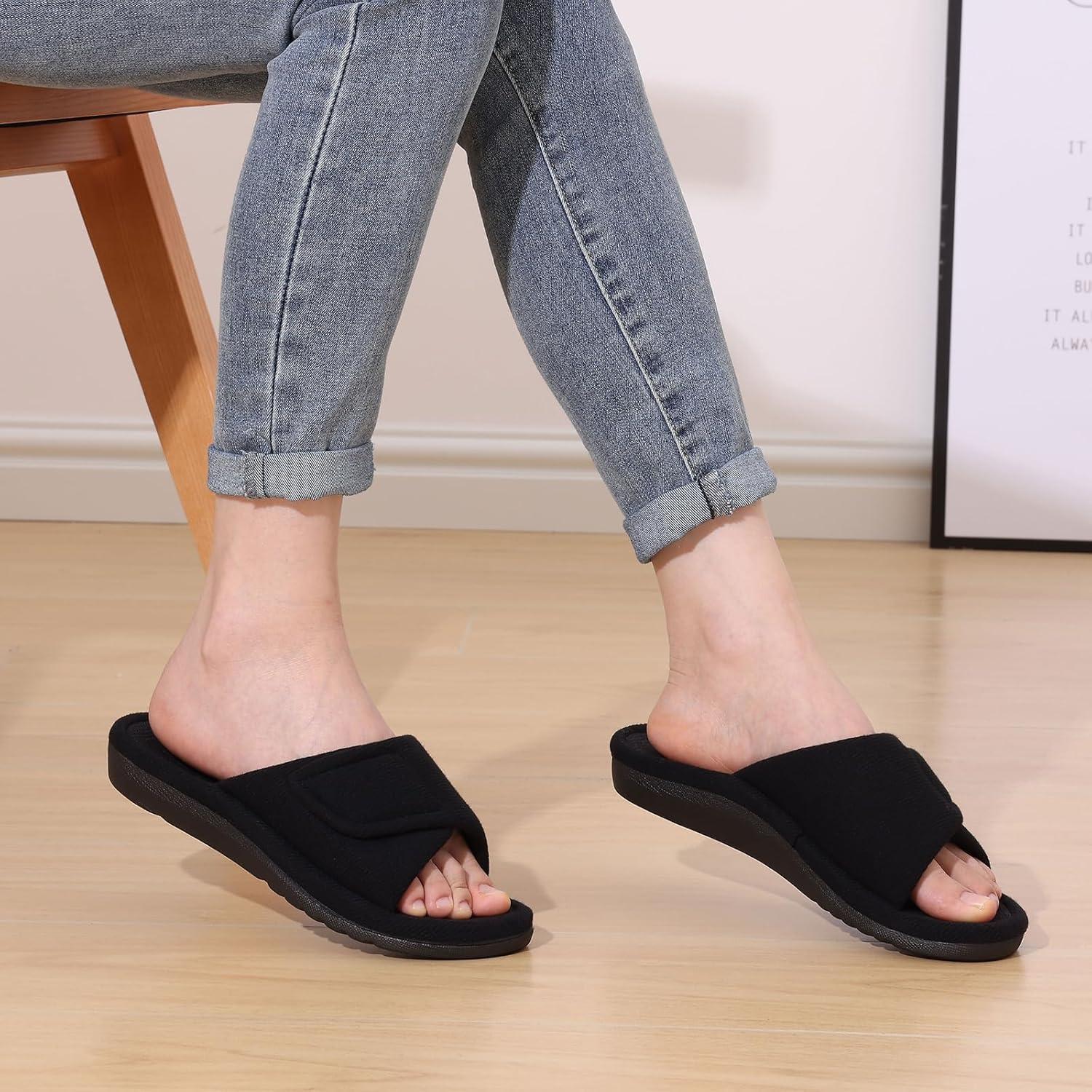 shevalues Summer House Slippers for Women with Arch Support Breathable Waffle Cotton Indoor Slippers Slip on Open Toe Home Shoes(Carbon Black)